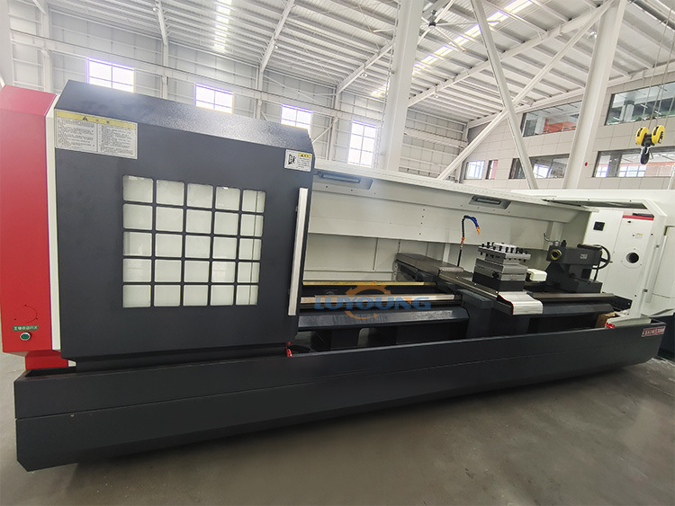 The Flat-Bed Structure (compared to a slant bed) provides stability and rigidity when bearing the weight of massive workpieces, making it particularly suitable for heavy-duty cutting.